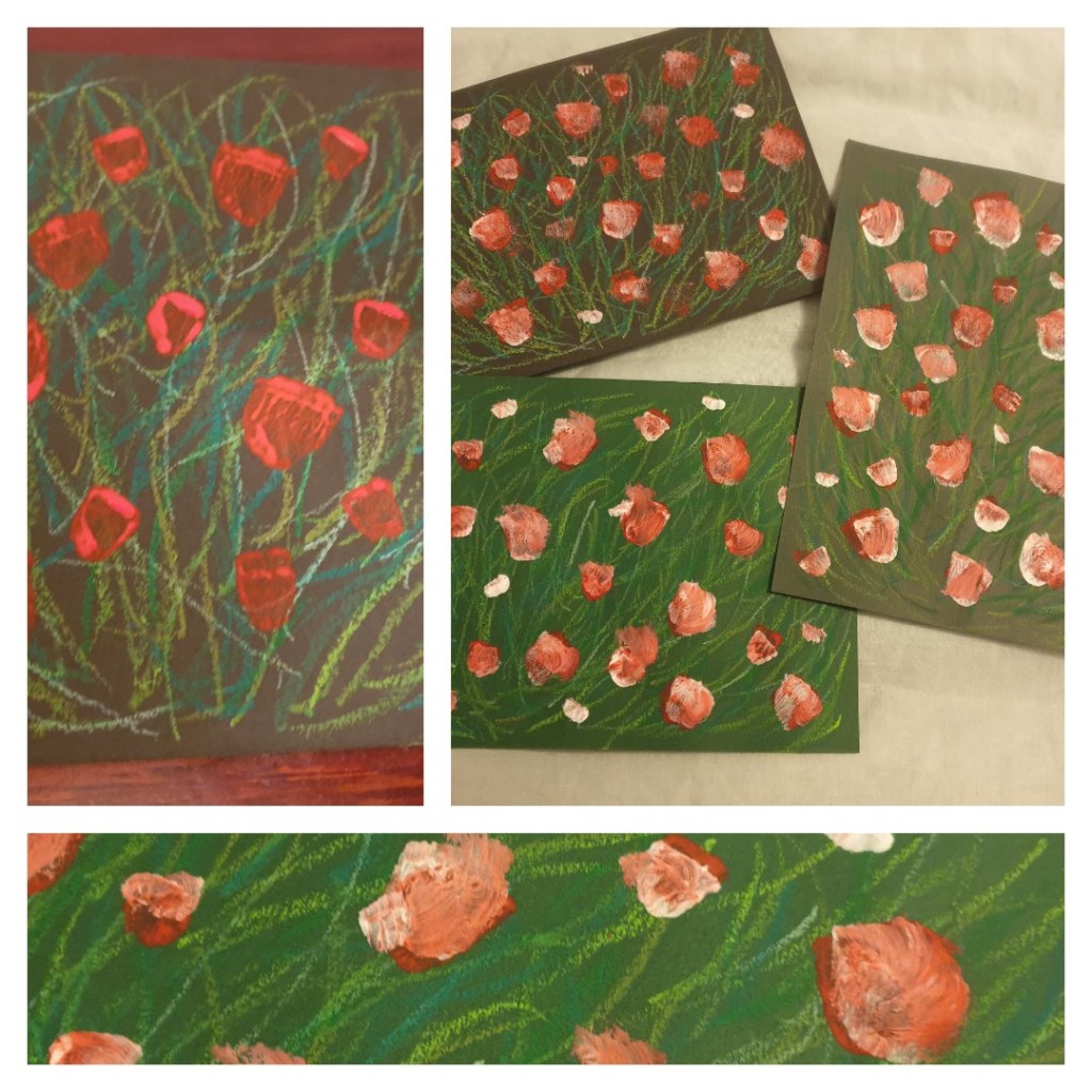 The aim of this activity is to be present in the moment, feeling for example how the pastels etc glide differently across different textures, creating movement on the page