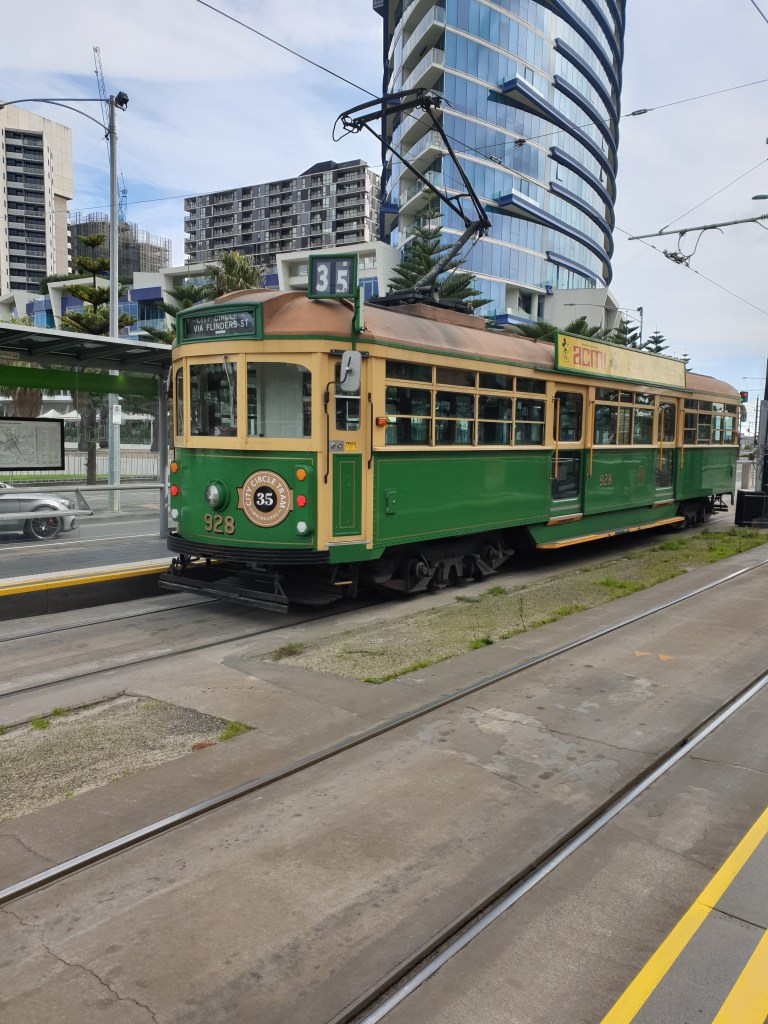 Green – The plants and grass that looked so vibrant, especially after being housebound last weekend (they also gave me hope that spring is only 5 weeks away; the distinctive green of the vintage city circle tram