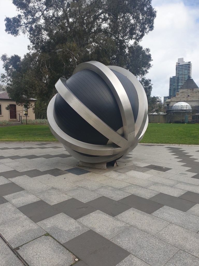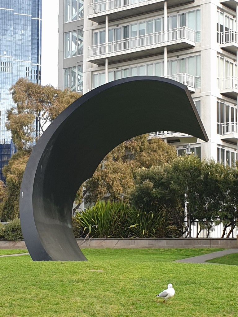 Greys – the adorable drawing that someone (I’m guessing a child, but I could be completely mistaken) drew on the pavement – again, how often do we stop to check out the pavement? The black and silver ball sculpture in the botanical garden; not to mention that awesome wave sculpture on the way to the NGV!