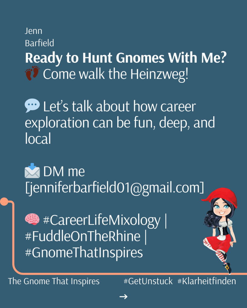 #TheGnomeThatInspires #FuddleOnTheRhine #Köln #CareerExploration #CareerDevelopment #CreativeCareerCoaching #StretchTheBoxThinking #DifferentPerspectives #Cologne #CareerLifeMixology #KarriereEntdecken #Germany #Deutschland #SoMuchMoreThanTalkingAboutJobs