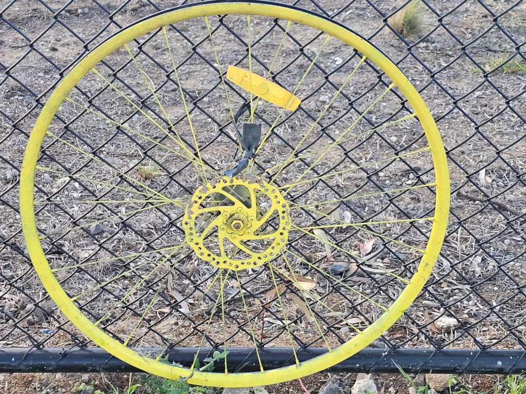 Along the fence of a nearby street, a burst of colour caught my eye – a row of old bicycle wheels painted in vivid hues and attached to the wire. At first, they looked like abandoned cogs, motionless and forgotten. But as I stood there, the afternoon wind swept through, making the fencing bend ever so slightly. The wheels trembled, a subtle dance only visible if you paused long enough to see.