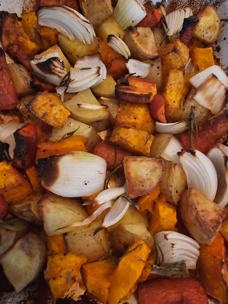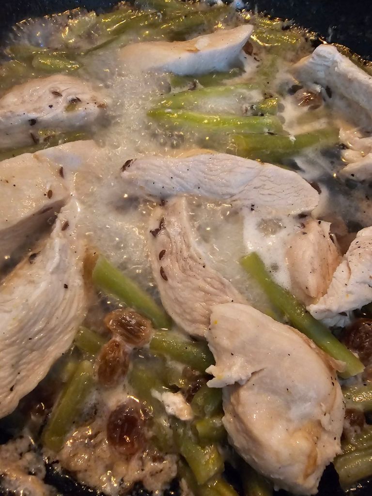 Still the dinner was delicious. Poached chicken breast marinated in a sparkling rosé, caraway seeds, green beans and sultanas. Served with maple glazed roast vegetables and a drizzle of chicken gravy 😋