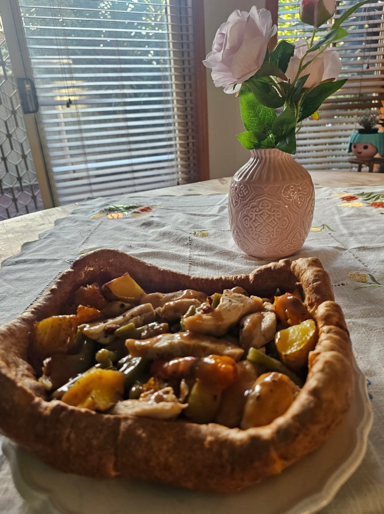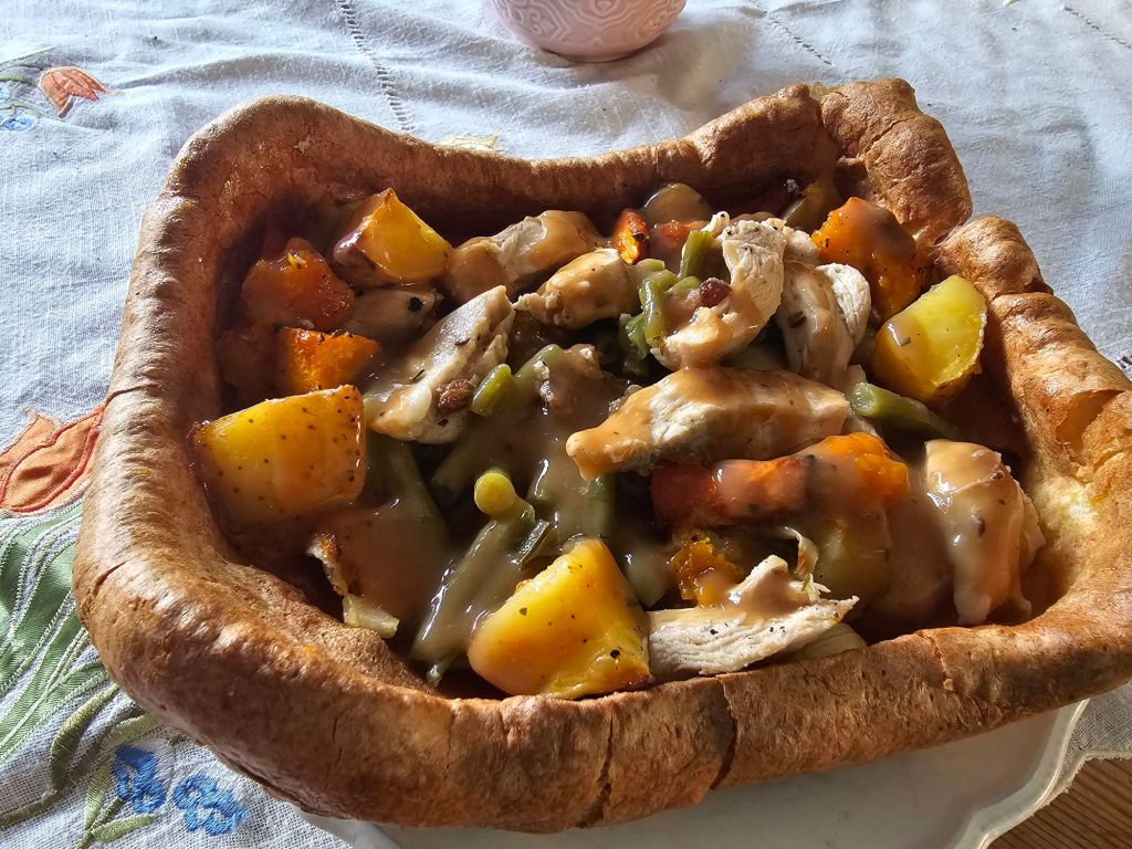 I’d been wanting to try a roast dinner inside a Yorkshire pudding for ages, and I had a craving for a roast, so I thought I’d give it a go, using whatever ingredients I had in my pantry and fridge.
